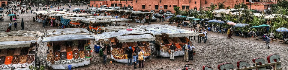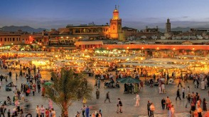 Marrakech, a former imperial city in western Morocco, is a major economic center and home to mosques, palaces and gardens. The medina is a densely packed, walled medieval city dating to the Berber Empire with mazelike alleys where thriving souks (marketplaces) sell traditional textiles, pottery and jewelry. Food vendors line Djemaa el-